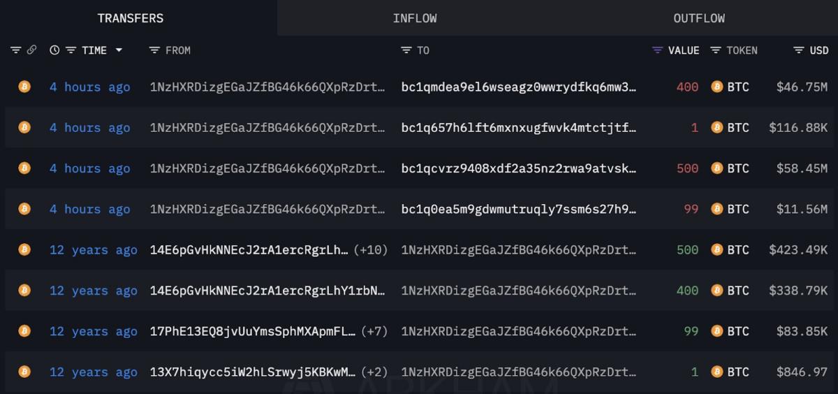 Kimliği bilinmeyen bir balina, 12 yıllık hareketsizliğin ardından 1.000 Bitcoin’i (BTC) (mevcut fiyatlarla yaklaşık 116 milyon dolar değerinde) transfer etti. Başlangıçta BTC’yi coin başına yaklaşık 847 dolardan almıştı. O dönemde BTC yaklaşık 847.000 dolar değerindeydi. Balina, bu varlığı on yıldan uzun süre elinde tuttuktan sonra çarşamba günü yeni cüzdanlara transfer etti.